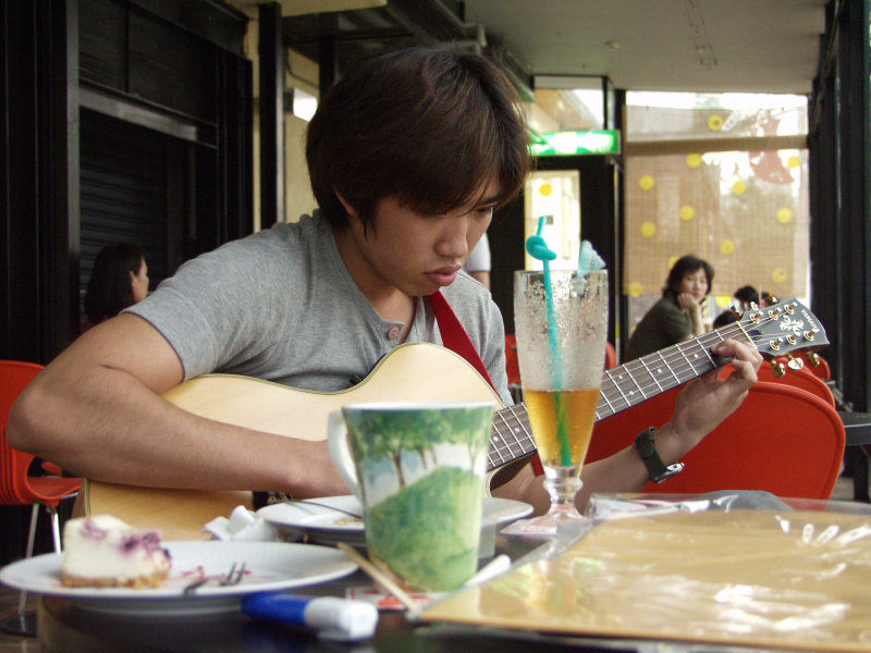 咖啡廳彈吉他的帥哥