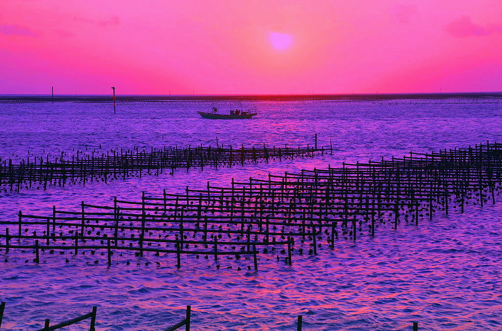 日落東石蚵棚