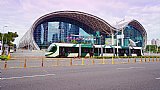 輕軌列車駛過世貿館