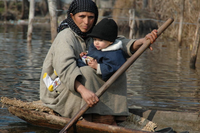 印度喀什米爾一對父子正去市集途中...