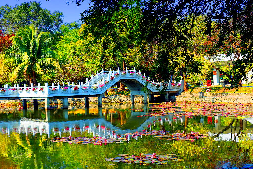 白橋紅卉景色宜人