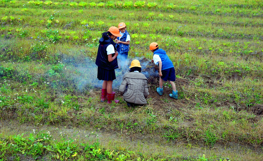 孩童燒土窯吃番薯