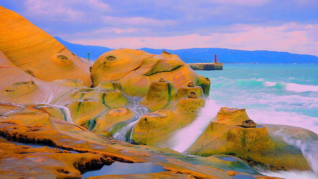 澎湃浪擊燭台岩