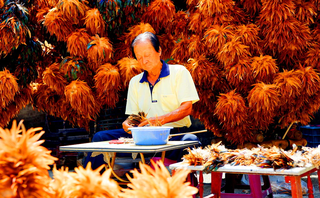 陳師傅製作雞毛撢子