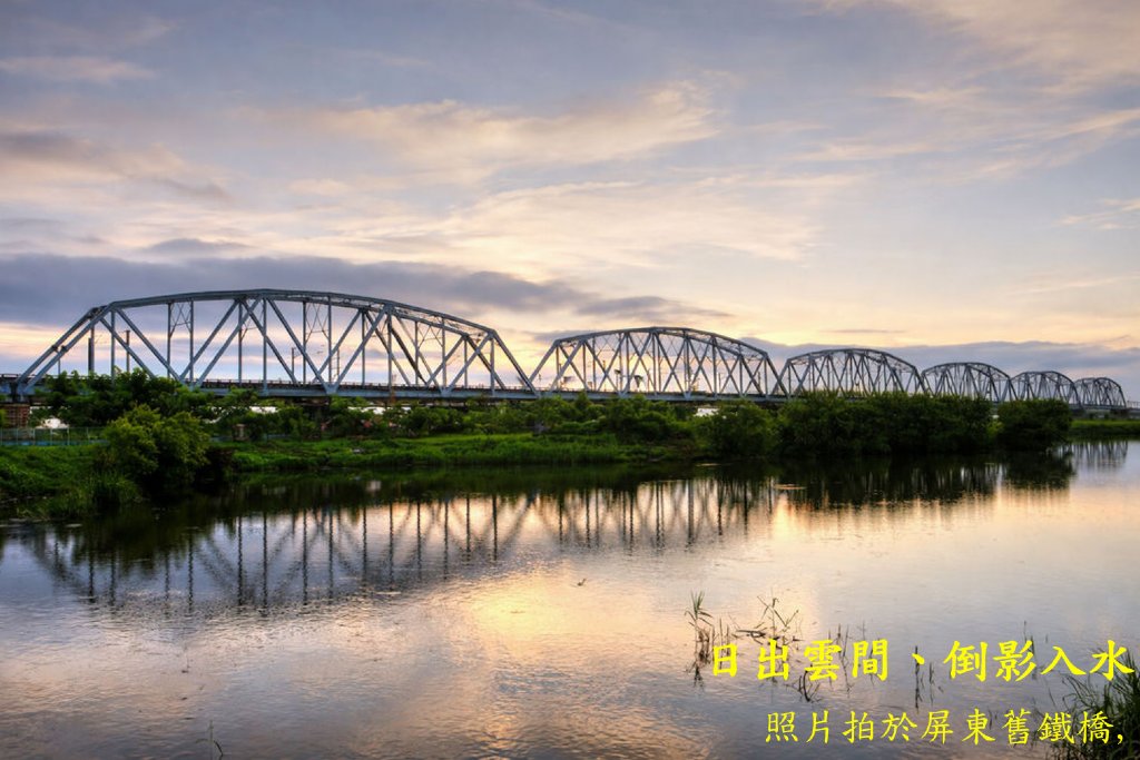 日出雲間、倒影入水