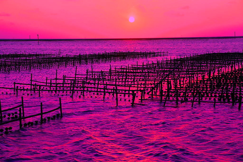 日落東石蚵棚