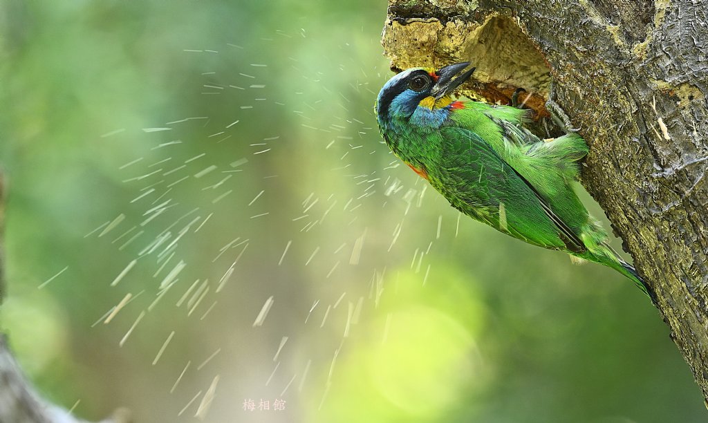五色挖洞噴木屑