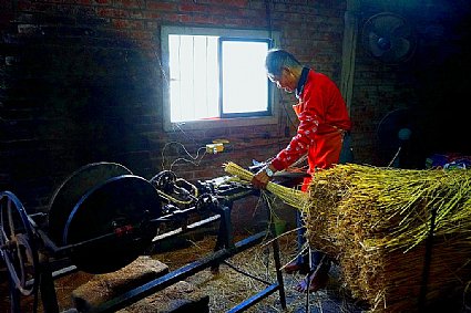 溪口稻草製織草繩老人