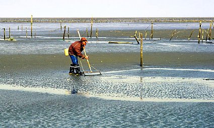 刮採蛤蜊老人