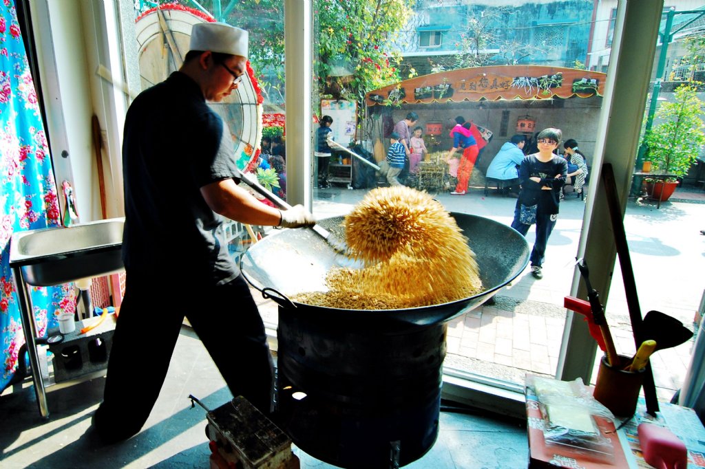 台南孔廟旁有一家知名的花生糖,師傅現場翻炒食材,利用快門來呈現炒的動感與師傅身體的律動,與大家分享.